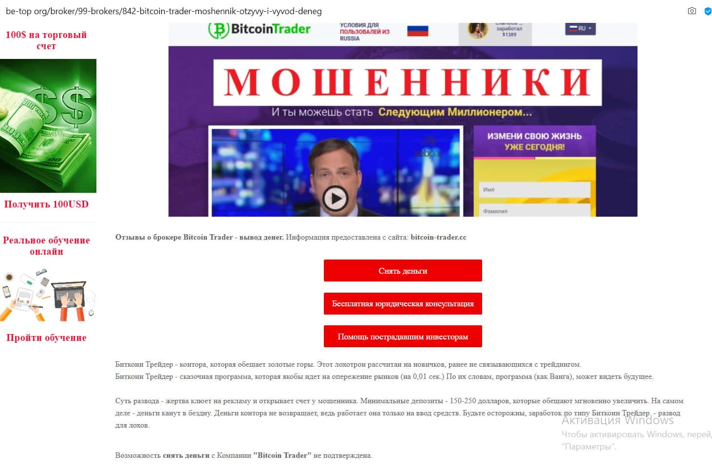 Негативный отзыв о жульнической конторе Биткоин Трейдер на сайте be-top org