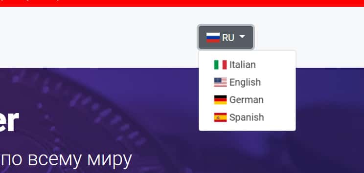 Лоховской сайт написан на русском языке, но это только главная страница. Остальные разделы на английском, чтобы создать видимость иностранной компании. Если нажать на кнопку выбора языка, выпадает окно с несколькими вариантами, но перевода на другие языки нет, только английская версия (так как сайт сам по себе фейковый).