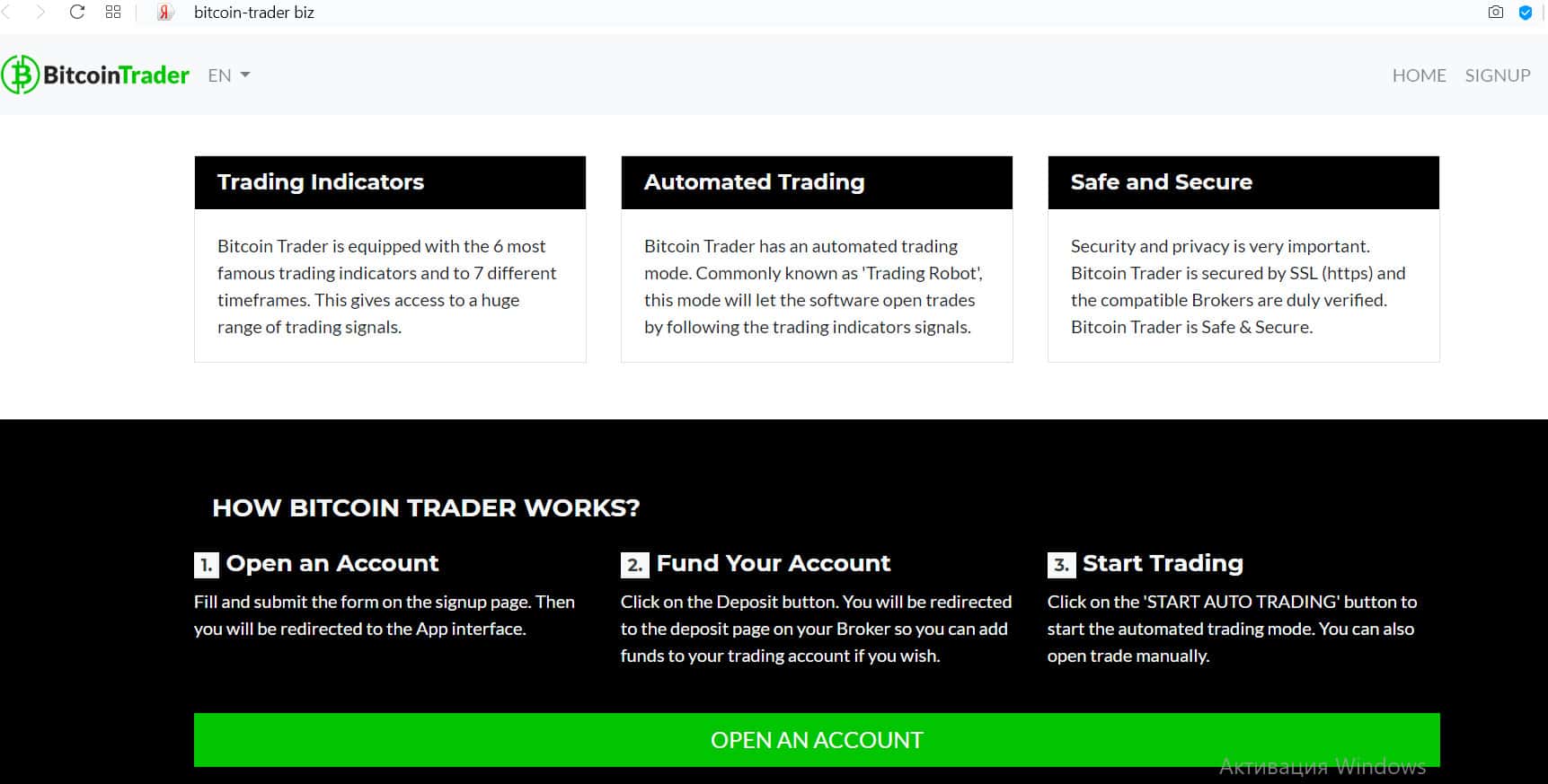 - Что представляет собой сайт компании Биткоин Трейдер?