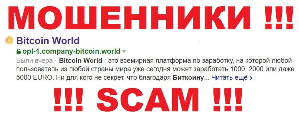 - Не видитесь на лохотроны подобные Bitcoin World