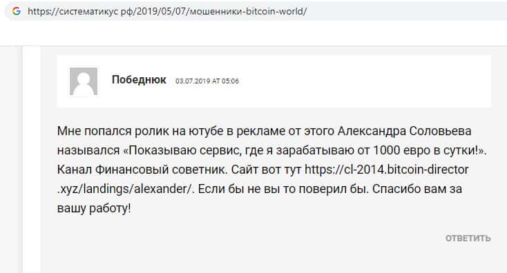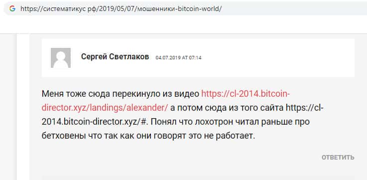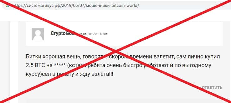 Фейковый отзыв от махинаторов Bitcoin World