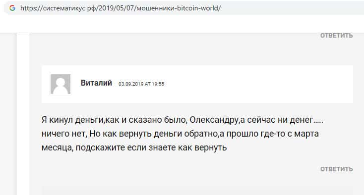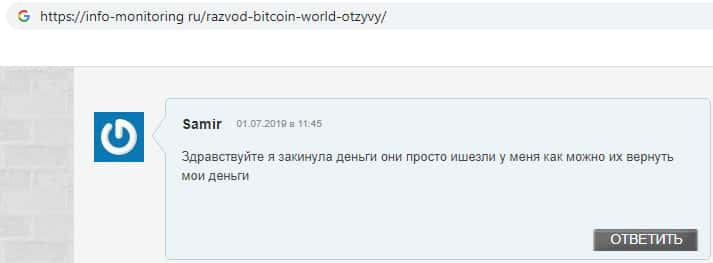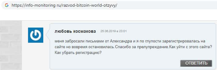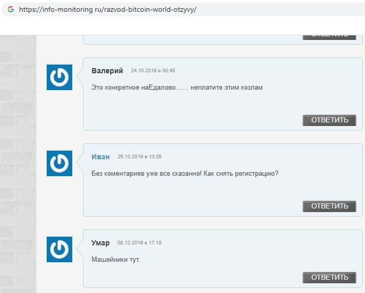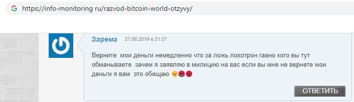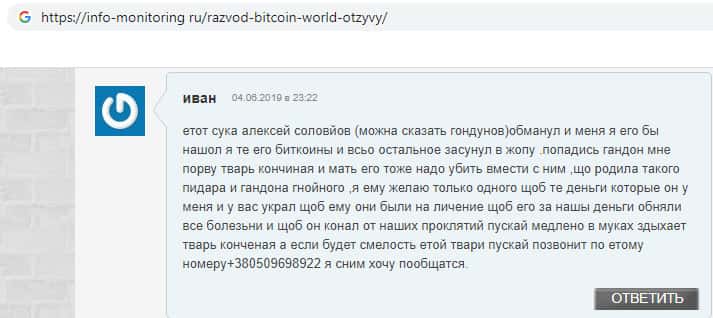 - Отзыв о кидалах Биткоин Ворлд от очень разгневанного клиента