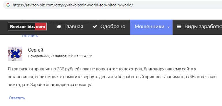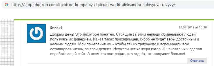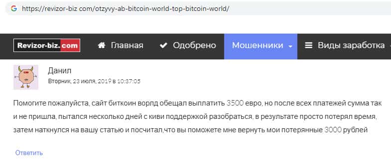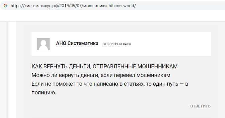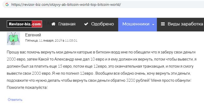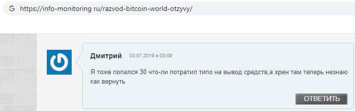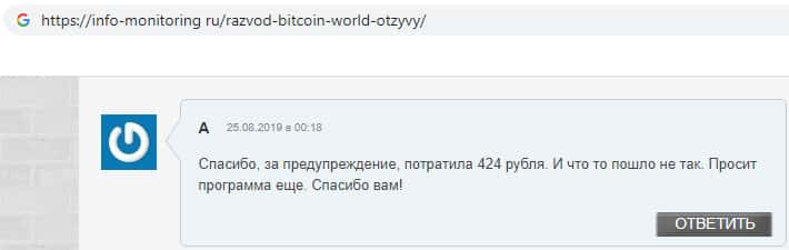 Проплаченный отзыв от разводил Bitcoin World