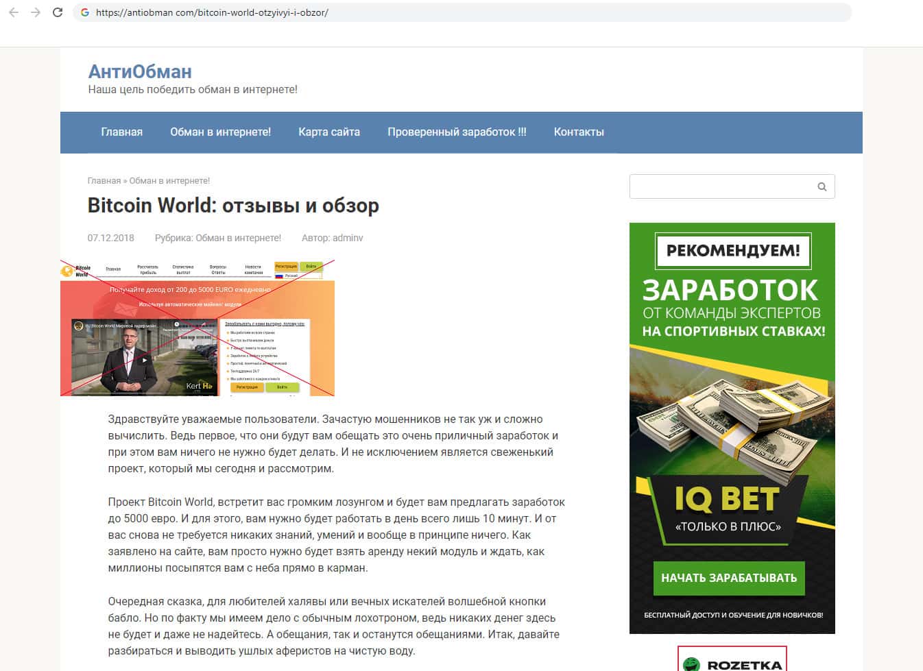 - Мнение сайта АнтиОбман о аферистах Bitcoin World