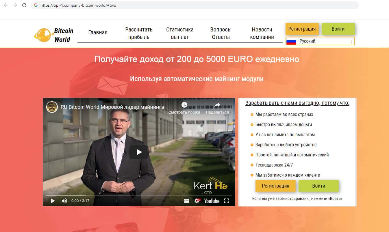 Видео ловушка от аферистов Биткоин Ворлд