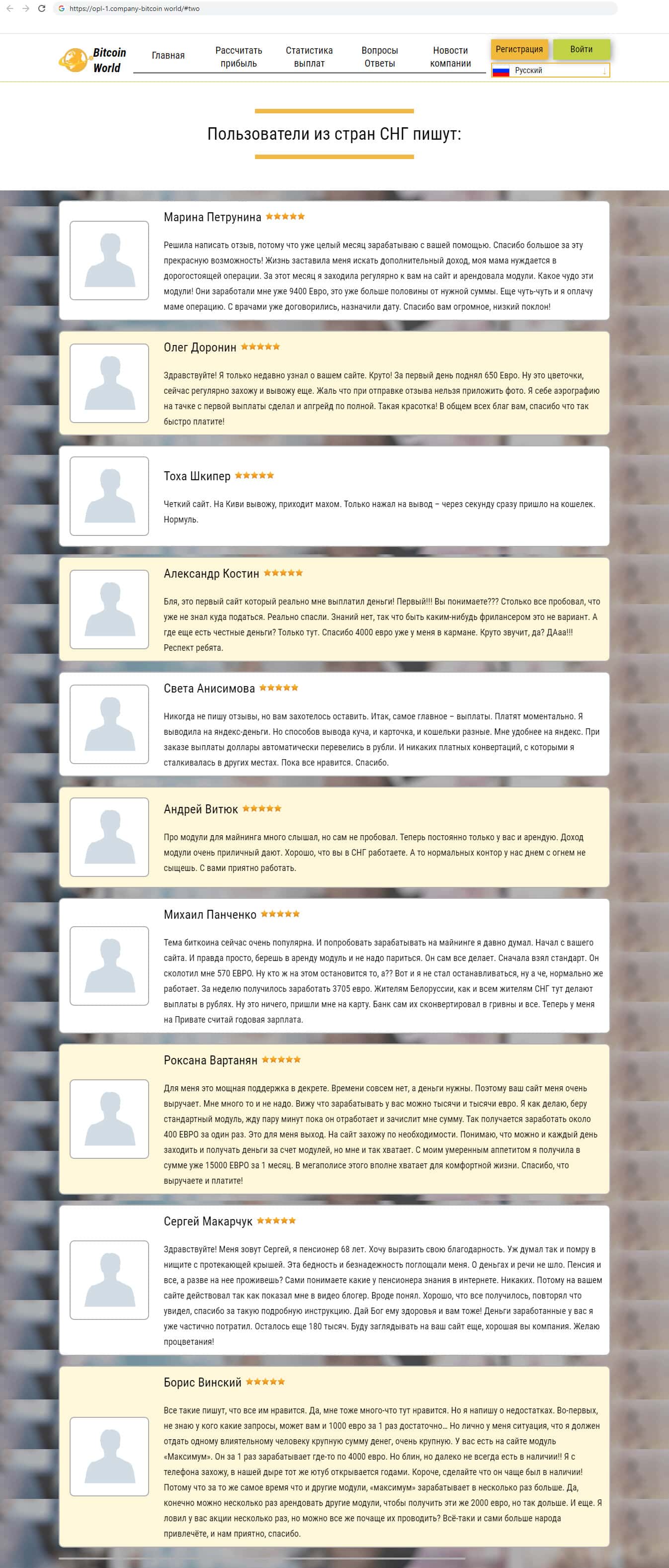 - Лохотрон Bitcoin World не экономит на отзывах о себе