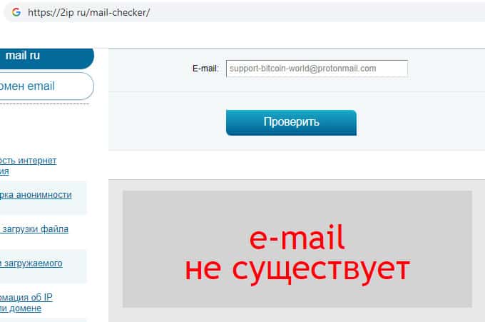 Мы проверили указанный адрес электронной почты, который указала мошенническая организация Bitcoin World. Он оказался несуществующем. Контора указала левый адрес, для того, что бы не читать гневные письма обманутых клиентов. Очень жаль, что фирма так относится к своим клиентам.