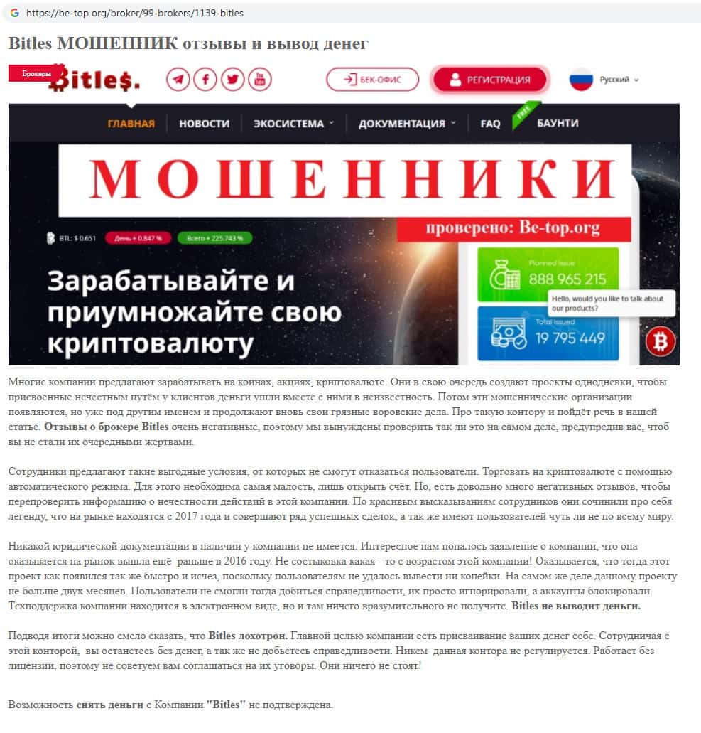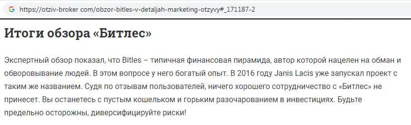 - Bitles Eu - обзоры скам-организации на других интернет-ресурсах
