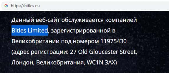 Сведения о месте регистрации Bitles Eu фальшивы, так как большинство мошеннических проектов у себя на сайте указывают адрес в Лондоне для приманки очередного лоха.