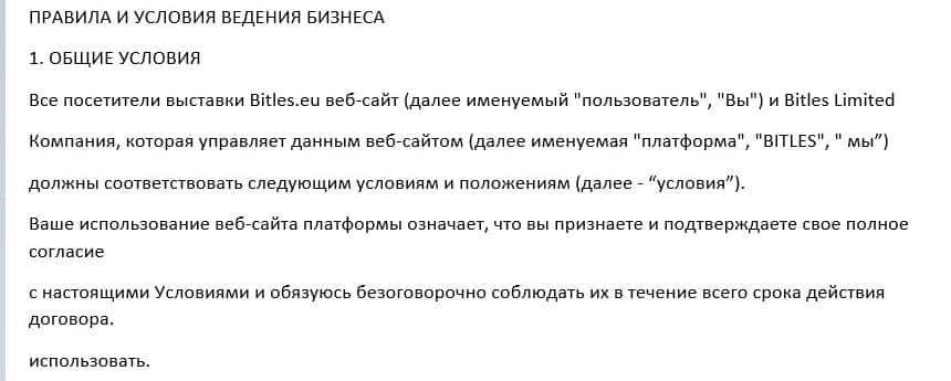 Ниже предоставлена полная версия клиентского соглашения мошеннической организации Bitles Eu, которое подтверждает то, что перед нами очередной интернет-лохотрон.