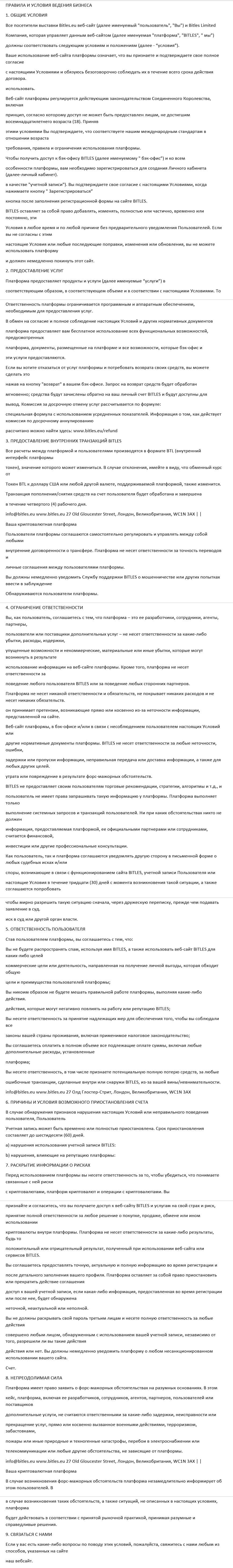 Клиентское соглашение на сайте криптолохотрона Bitles