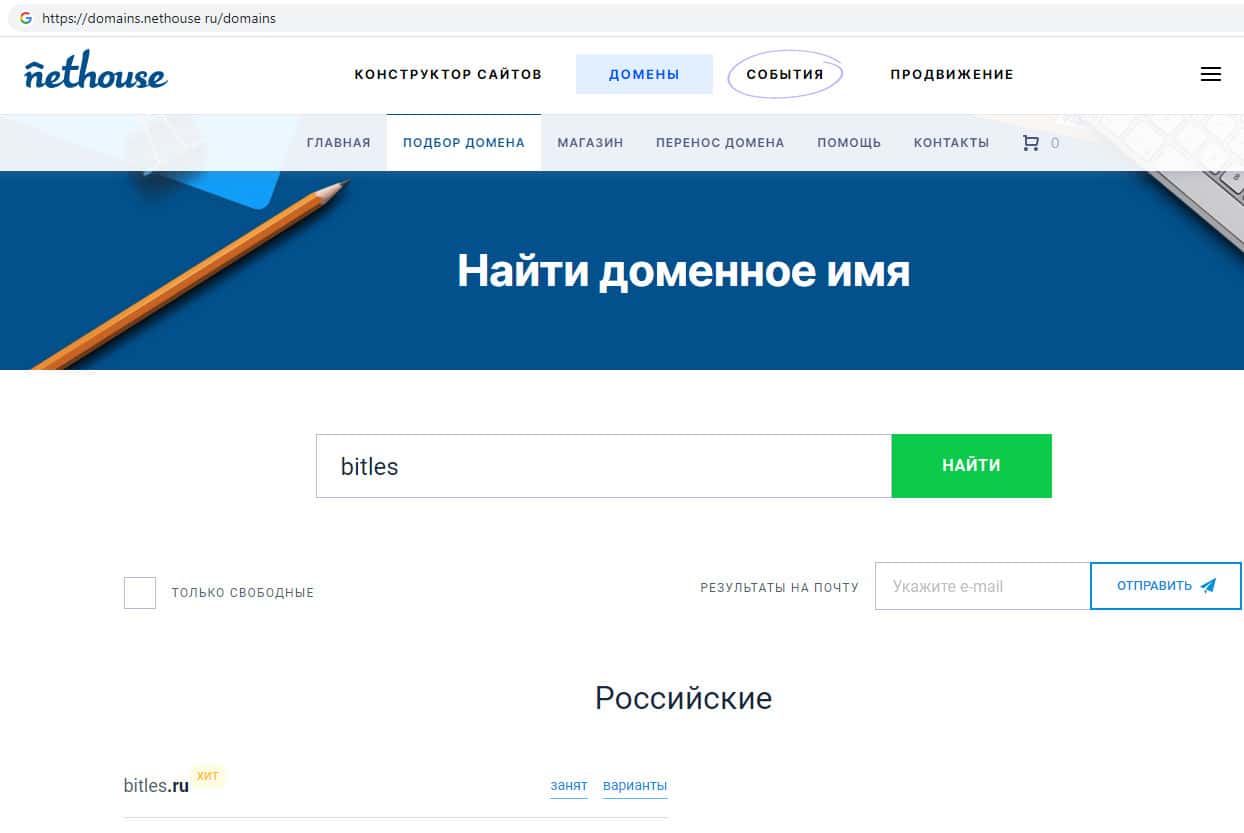 domains nethouse ru - проверка информации о регистрации домена на бренд