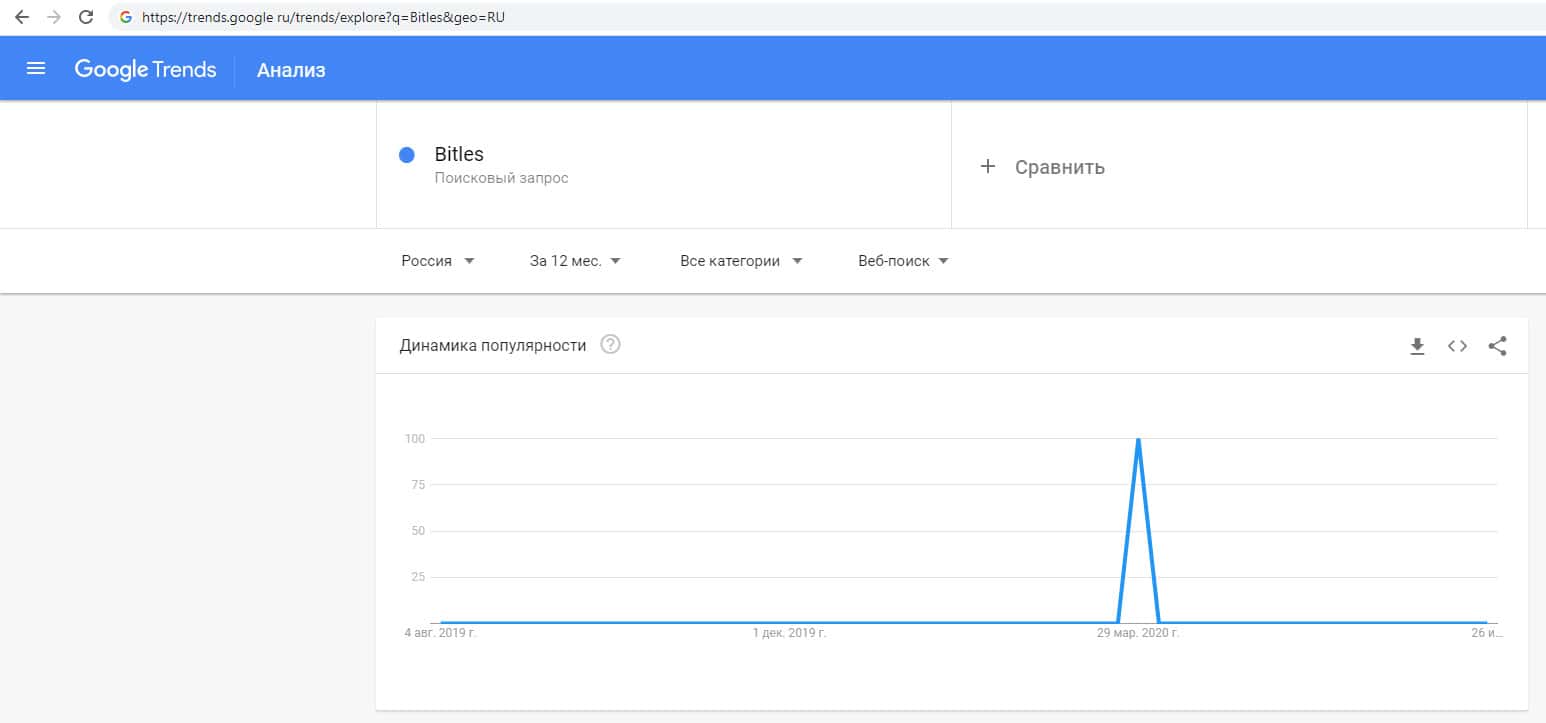 О запросах по бренду названия компании на русском языке "Битлес"на Гугл Трендс нет данных, поскольку шарага не пользуется популярностью.