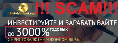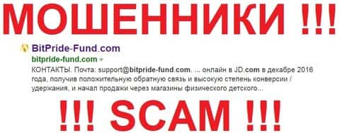 Ознакомившись с информацией о хайпе в википедии, каждый посетитель сайта BitPride-Fund Com обязан понимать, что эта веб-площадка четко подходит под определение мошеннический проект. Так как с аферистами Бит Прайд Фонд Вы имеете дело с нереально высокими процентами и криптовалютой.