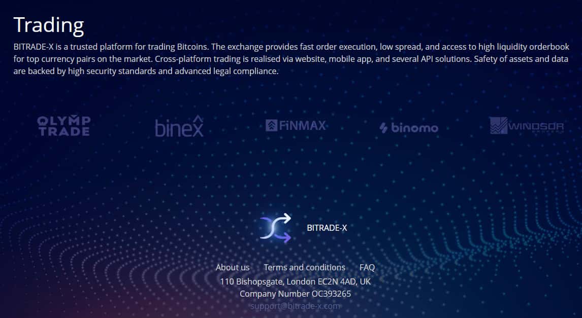 Дабы повысить прибыль и привлечь новых клиентов мошенники Битрейд Икс начали сотрудничать с различными конторами, такими как аферисты Виндзор брокер, жулье Биномо, лохотрон Фин Макс, проходимцы Бинекс, лохотрон Олимп Трейд. На изображении ниже вы можете даже увидеть упоминание об этом с сайта шулеров Bitrade X.