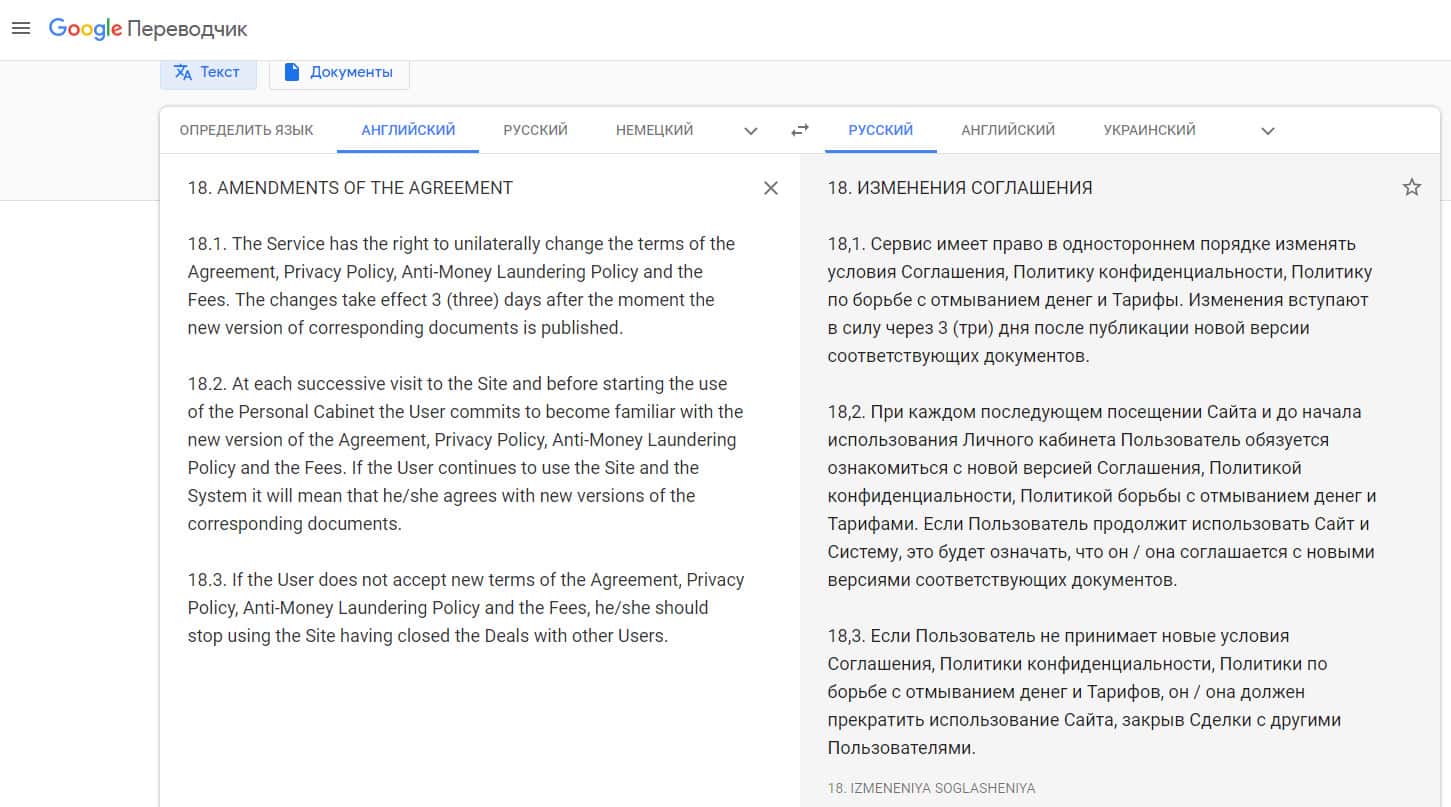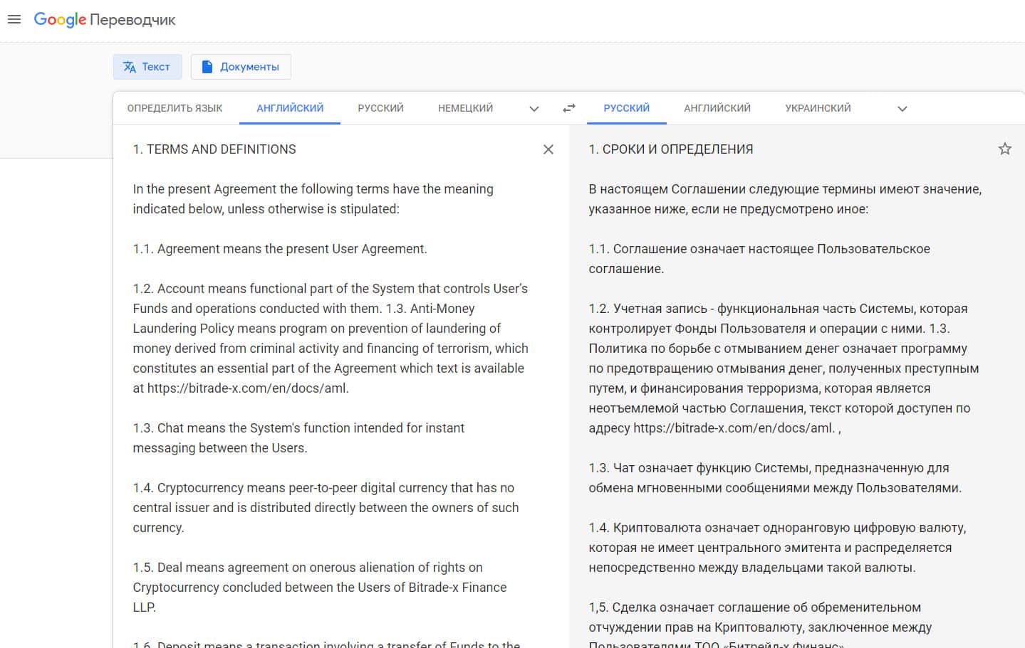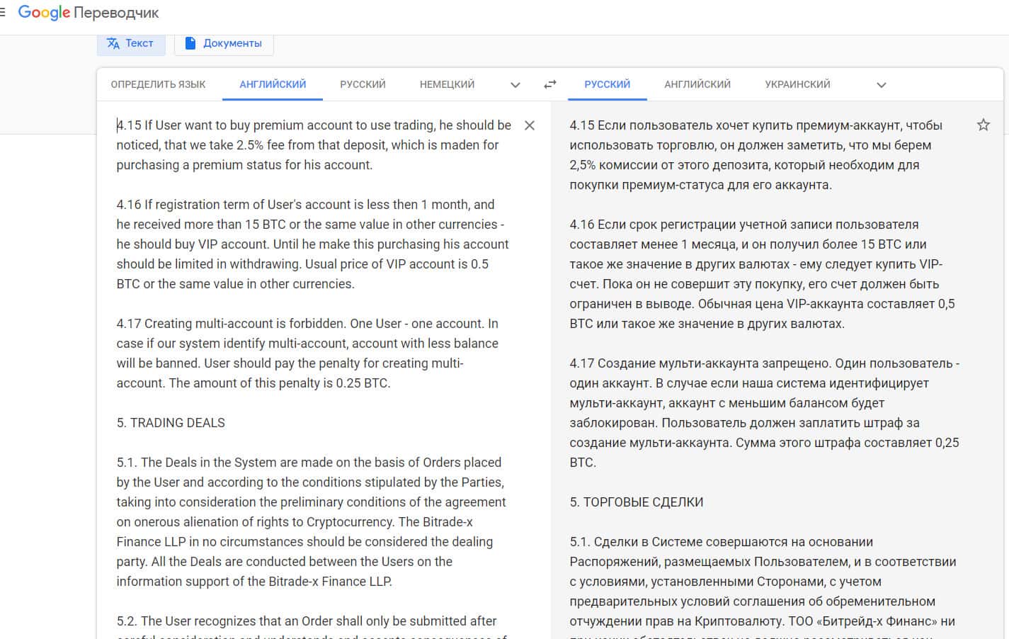 - Перечень условий клиентского соглашения мошенников Bitrade X