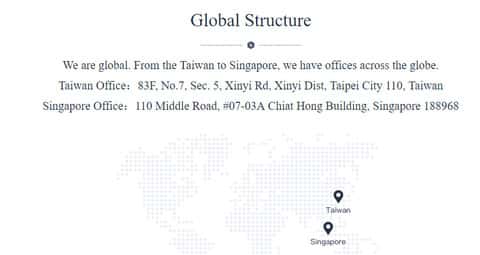 - офис в Сингапуре 110 Middle Road, #07-03A Chiat Hong Building, Singapore 188968;