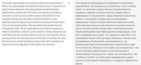 В документе о политике конфиденциальности кухни Битруе также не очень гладко, так как там указано, что данный лохотрон не может гарантировать абсолютную безопасность личных данных клиентов. Так что если информация о вас куда-то утечет, то контора заранее спишет все на хакеров и взлом системы, а с себя ответственность снимет.