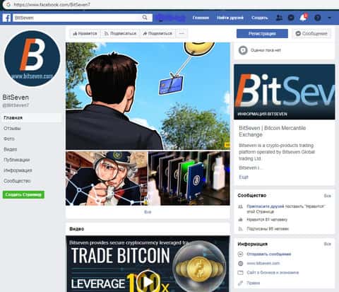 Дабы соответствовать современным трендам и требованиям аудитории аферисты BitSeven обзавелись страницами в социальных сетях. Одной из таких стала социальная сеть Facebook, в которой страница мошенников БитСевен насчитывает менее ста подписчиков, да и к тому же жулики ею явно не занимаются, и отклика аудитории нет.