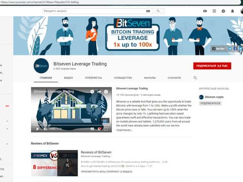 Ну и как положено имеется у проходимцев BitSeven страница в социальной сети YouTube, которую лохотрон БитСевен использует для размещения различных рекламных видеороликов, предназначенных для очередной лапши на уши клиентам о своих "чудо" стратегиях. Ниже вы можете увидеть страницу шулеров BitSeven в Ютубе.