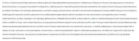 Далее мошенники БитСевен вообще заявляют о том, что не несут ответственности за результаты торговой деятельности клиента даже в тех случаях, когда котировки на сайте аферистов BitSeven не соответствовали реальности, тем самым лохотрон БитСевен дает себе права делать что-угодно со счетом клиента.