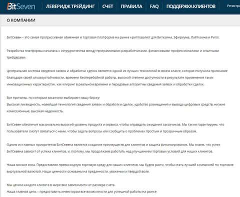 - Условия сотрудничества с аферистами BitSeven