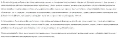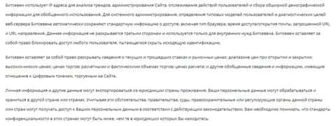 Завершить описание политики конфиденциальности аферистов БитСевен стоит тем, что шулера BitSeven в придачу ко всему еще и оставляют за собой право устанавливать ваше местоположение, IP и хранить файлы куки. На изображении ниже вы можете прочесть информацию об этом.