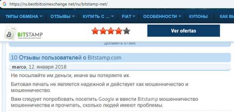 - Еще один довольно негативный отзыв о лохотроне Bitstamp с портала bestbitcoinexchange net