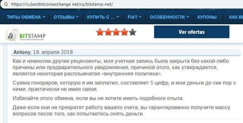 Негативный отзыв пользователя в сторону проходимцев Bitstamp с веб-площадки bestbitcoinexchange net