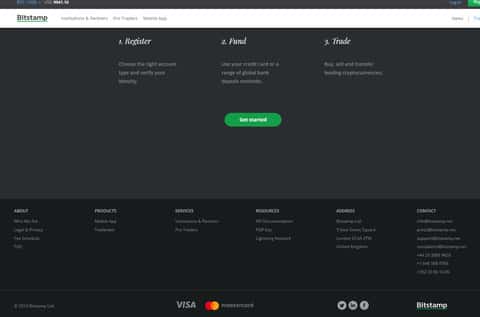 Завершается же сайт у мошенников БитСтамп довольно стандартно и ожидаемо, а именно последним уговором от лохотрона Bitstamp зарегистрироваться в их помойке наивной клиентуре, а так же меню со ссылками на различные разделы сайта шулеров БитСтамп. На изображении, расположенном ниже, вы можете наглядно увидеть окончание сайта аферистов Bitstamp.