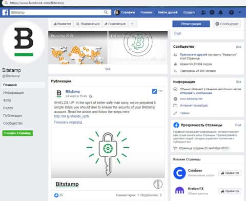 Дабы соответствовать современным трендам аферисты Bitstamp обзавелись страницами в различных социальных сетях, одной из которых стал Facebook, где шулера БитСтамп не пожелали денег и накрутили несколько десятков тысяч подписчиков, а вот их активности на аккаунте лохотрона Bitstamp не наблюдается, что вы можете наглядно увидеть на изображении ниже.