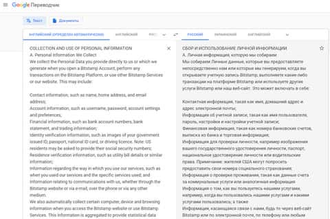 Далее в политике конфиденциальности у мошенников Bitstamp следует перечень собираемой ими информации, который, несмотря на свой объем, все же оставляет лохотрону БитСтамп право запросить у пользователей дополнительную личную и персональную информацию. На изображении ниже вы можете увидеть очередной раздел политики конфиденциальности шулеров.