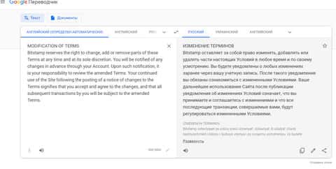 Завершается политика конфиденциальности у лохотрона БитСтамп вполне ожидаемо, а именно условием от мошенников Bitstamp о том, что они могут в любой момент по своему личному и персональному усмотрению изменить данную политику конфиденциальности. На изображении, расположенном ниже, вы можете увидеть окончание условий сотрудничества жуликов БитСтамп.