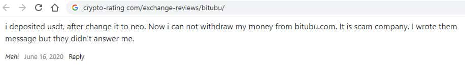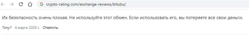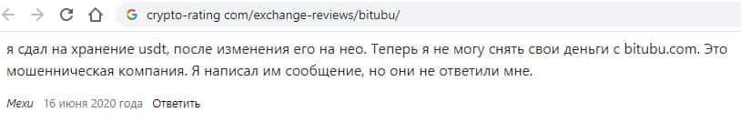Клиенты BITUBU также предостерегают других потенциальных жертв от того, чтобы они меняли свои деньги в этой лоховозке, потому что назад их уже не увидят.
