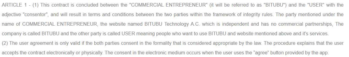 Клиентское соглашение мошеннической конторы BITUBU