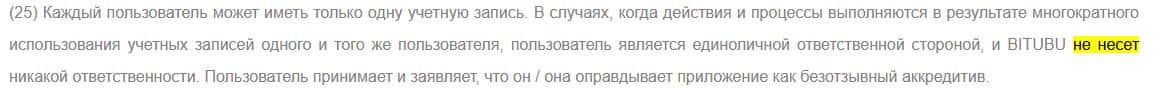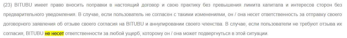 Ниже вы можете ознакомиться с полной версией договора мошенников Битубу, которая и будет регулировать ваши с ними взаимоотношения.
