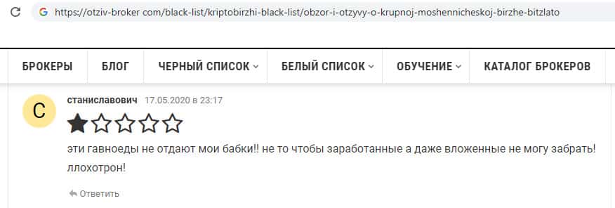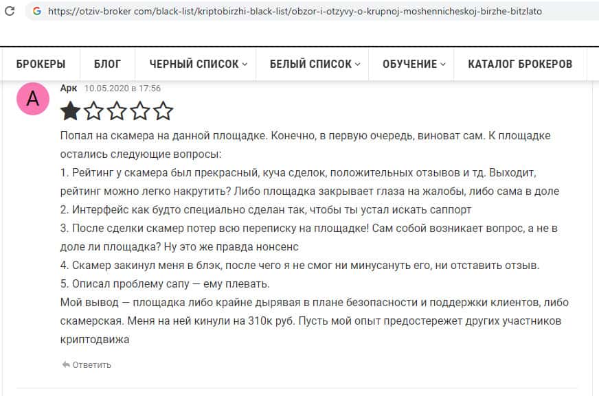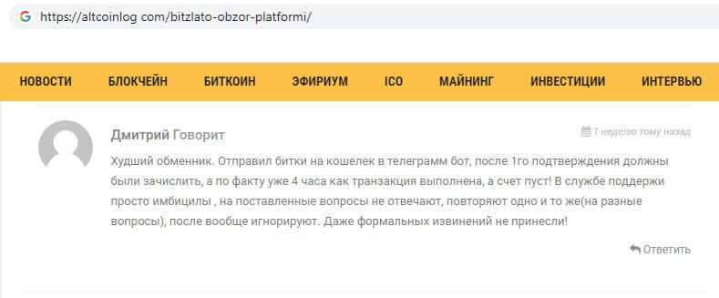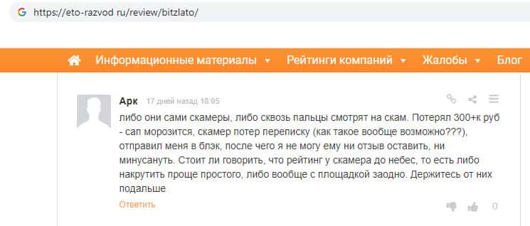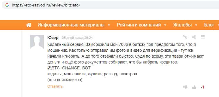 - Мнение других интернет ресурсов о фирме мошенников Битзлато