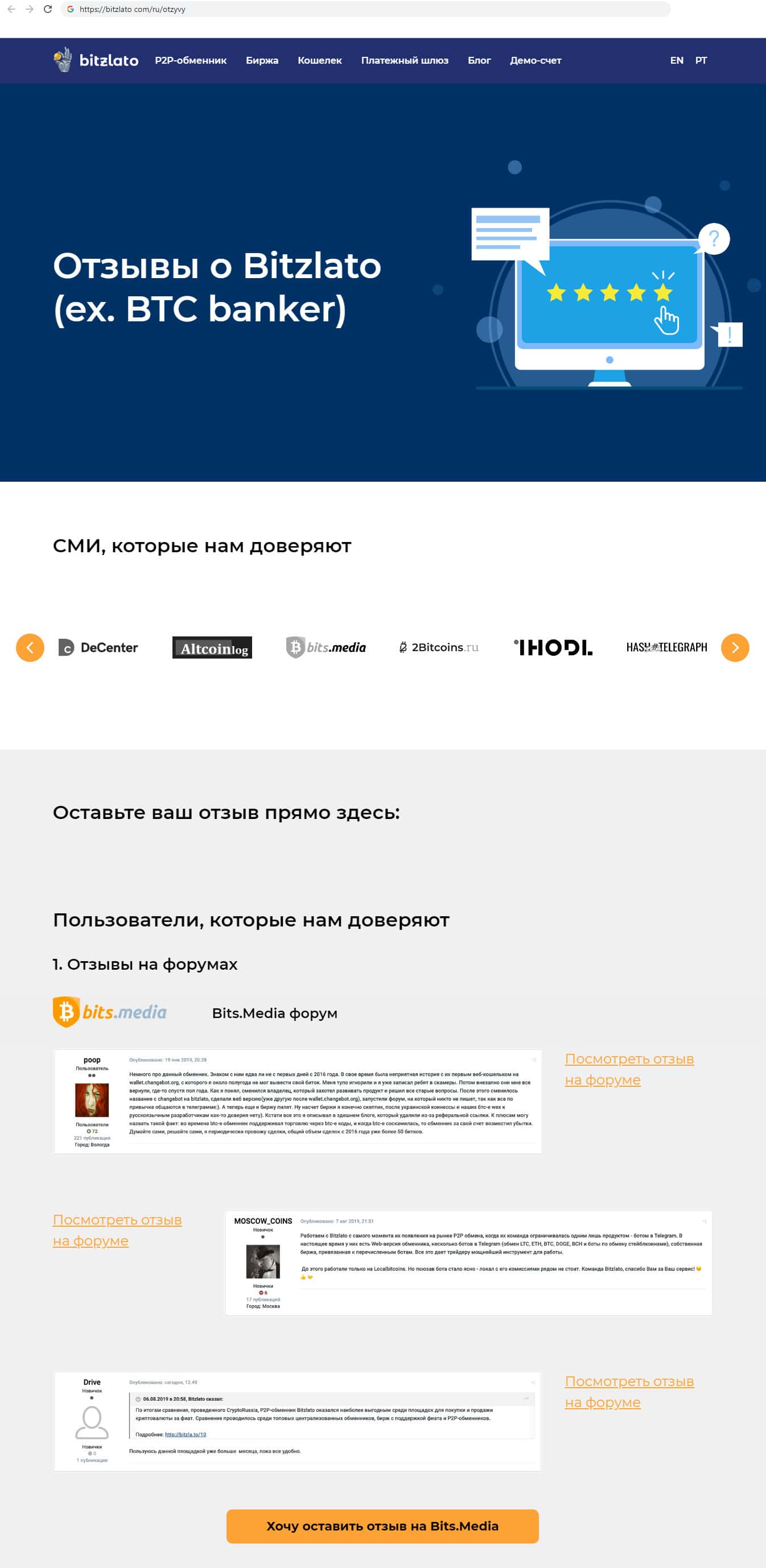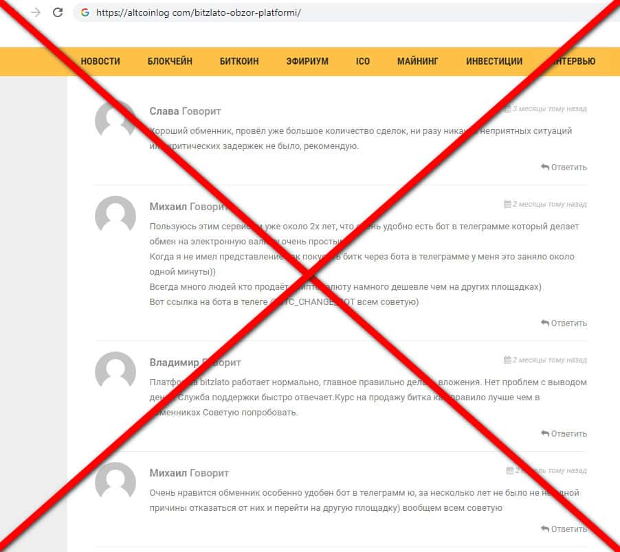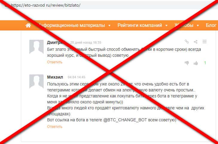 - Фальшивые отзывы на главном сайте кидал Битзлато