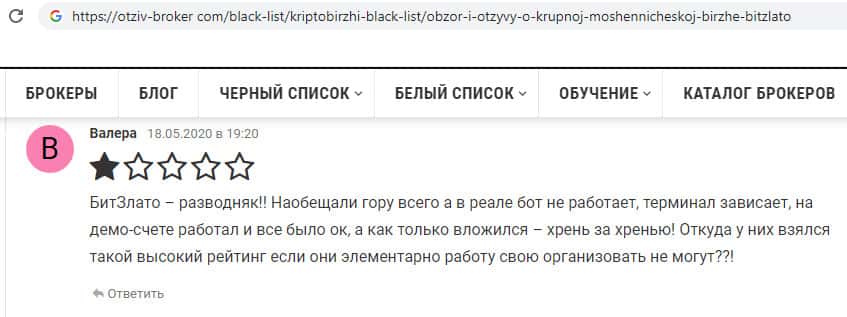 otziv-broker com - сайт с отзывами о жуликах Битзлато