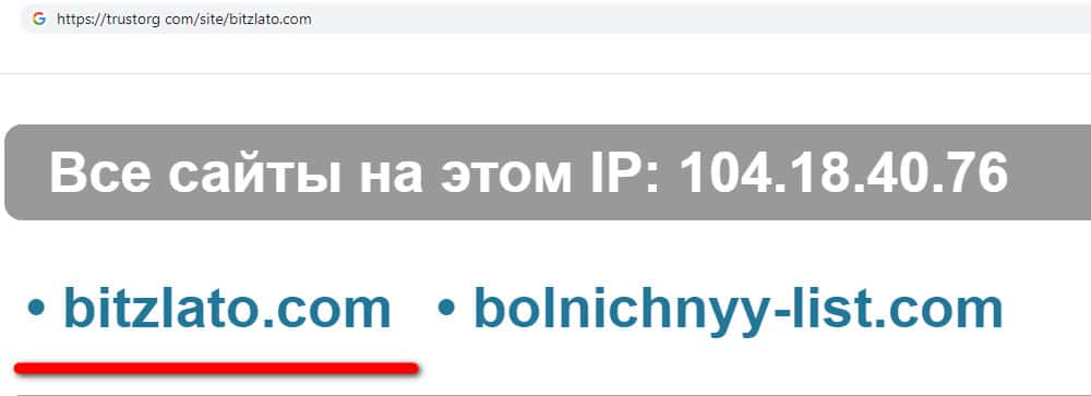 Так же мы проверили фирму махинаторов Битзлато через интернет ресурс "Доверие в Сети". Оказалось, что на одном айпи с компанией мошенников Битзлато расположилась другая компания, которая является компанией по выдачи медицинских справок. Возможно это другая компания жуликов, или ж это просто одни и те же разводилы, прото создали 2 компании.