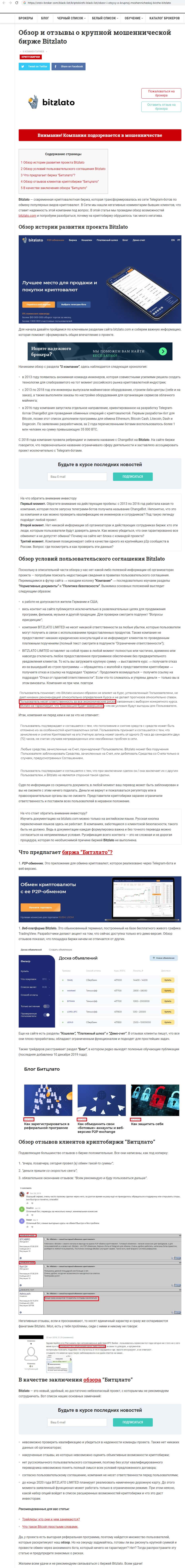 Жулики Битзлато очень хорошо следят за своей репутацией и постоянно удаляют разоблачительные статьи о себе. Но нам удалось найти на сайте отзыв-брокер ком статью, которая очень точно описывает фирму. В статье идёт речь о мошенничестве компании, так же представлены пункты которые доказывают мошенничество фирмы.