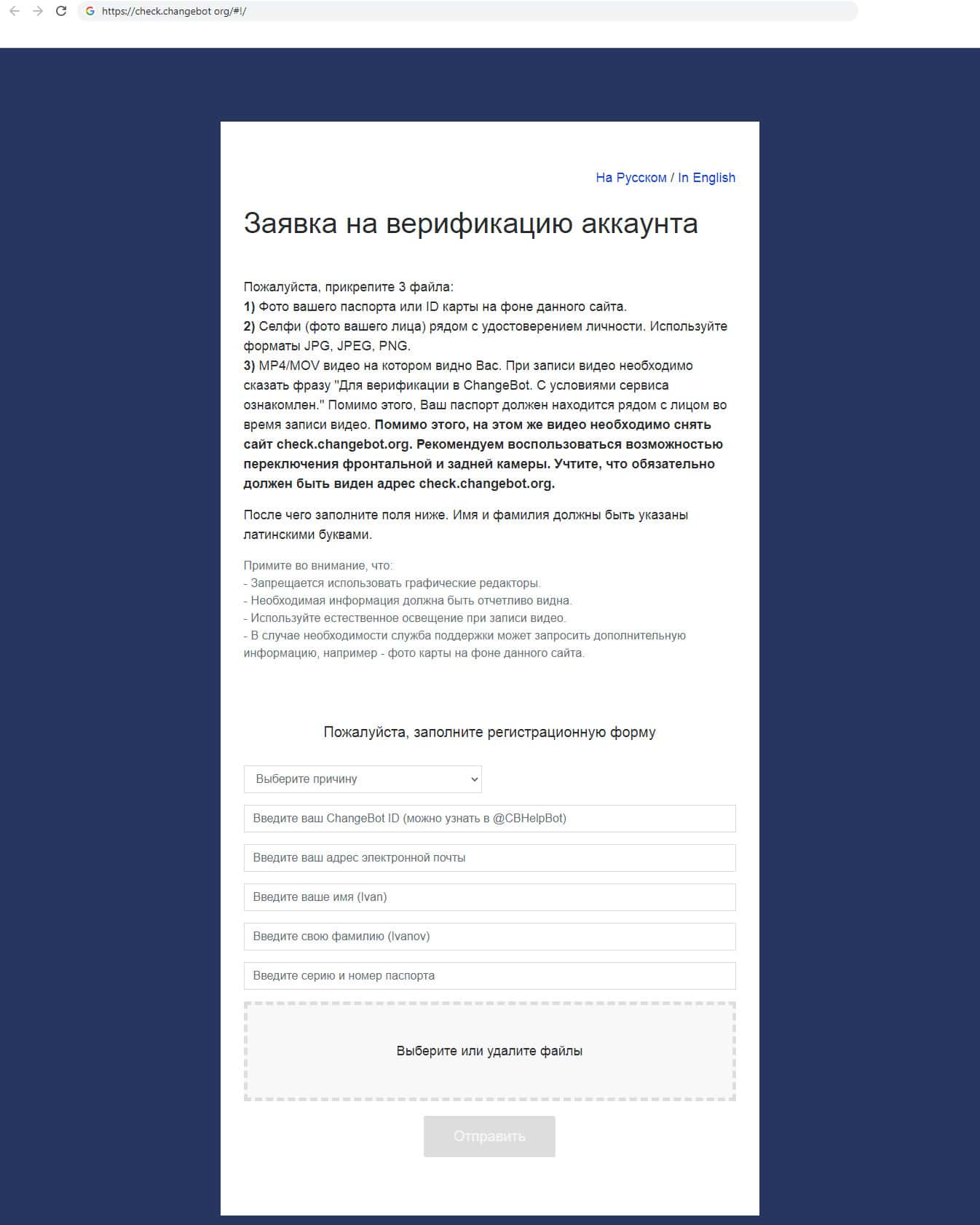 Для того что бы якобы подтвердить свою личность помимо регистрации нужно пройти верификацию аккаунта. Для этого махинаторы Битзлато требуют что бы пользователи прислали им фото документов, так же фото на фоне сайта с документами, и видео, где нужно сказать фразу с документами в руках.