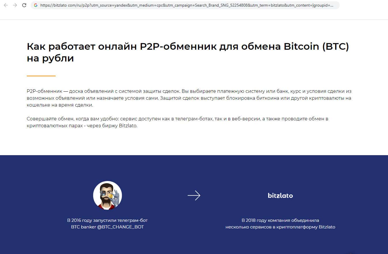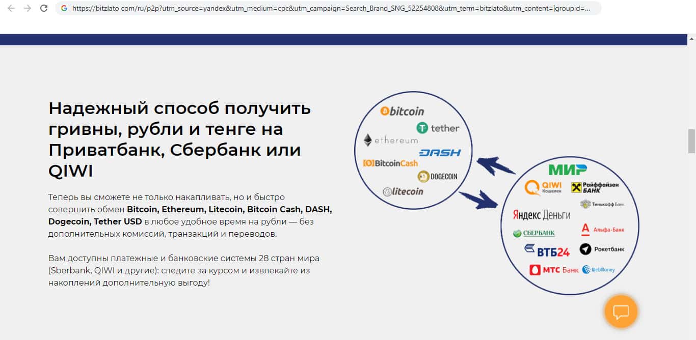 Так же для того что бы обмануть пользователей компания разводил Bitzlato указывают, что это чуть ли не единственный способ получить гривны, рубли на банковские счета Украины и России. Многие пользователи видя эту информацию действительно считают, что это очень удобный и простой способ получить деньги.