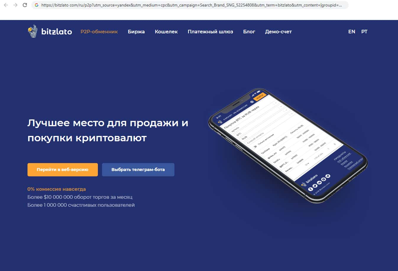 Главный интернет ресурс компании жуликов Bitzlato - это очередной коммерческий проект, который создан только для того, что бы выманивать деньги у клиентов. Жулики выполнили сайт в ярких тонах, что бы это привлекало внимание пользователей, так же наполнили сайт красивыми фразами и ложной информацией. Это рассчитано на самых наивный клиентов.