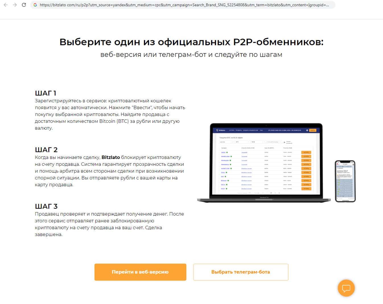 Далее махинаторы Bitzlato предоставили пошаговую инструкцию как обменивать средства. Для начала нужно зарегистрироваться, затем обменять. Компания утверждает, что в этот момент средства якобы замораживаются на счету продавца и сделка проводится прозрачно. После чего продавец увидит средства, и компания переведёт замороженную криптовалюту покупателю.