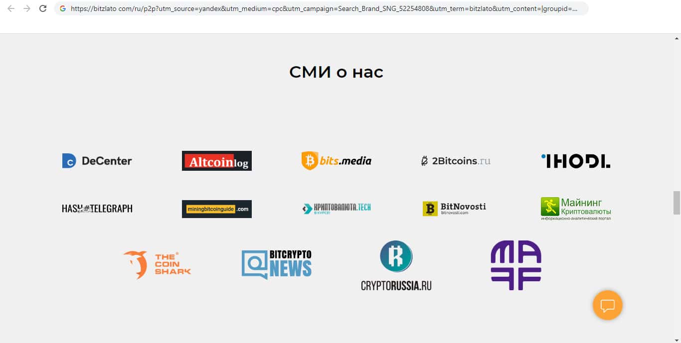 На главном интернет ресурсе недоконторы Битзлато есть раздел, в котором компания демонстрирует СМИ, которые писали статьи о компании. На самом деле аферисты просто оплатили эти статьи для того, что бы сделать себе рекламу. Если бы компания не заказывала статьи, то не демонстрировала бы их на своём сайте.