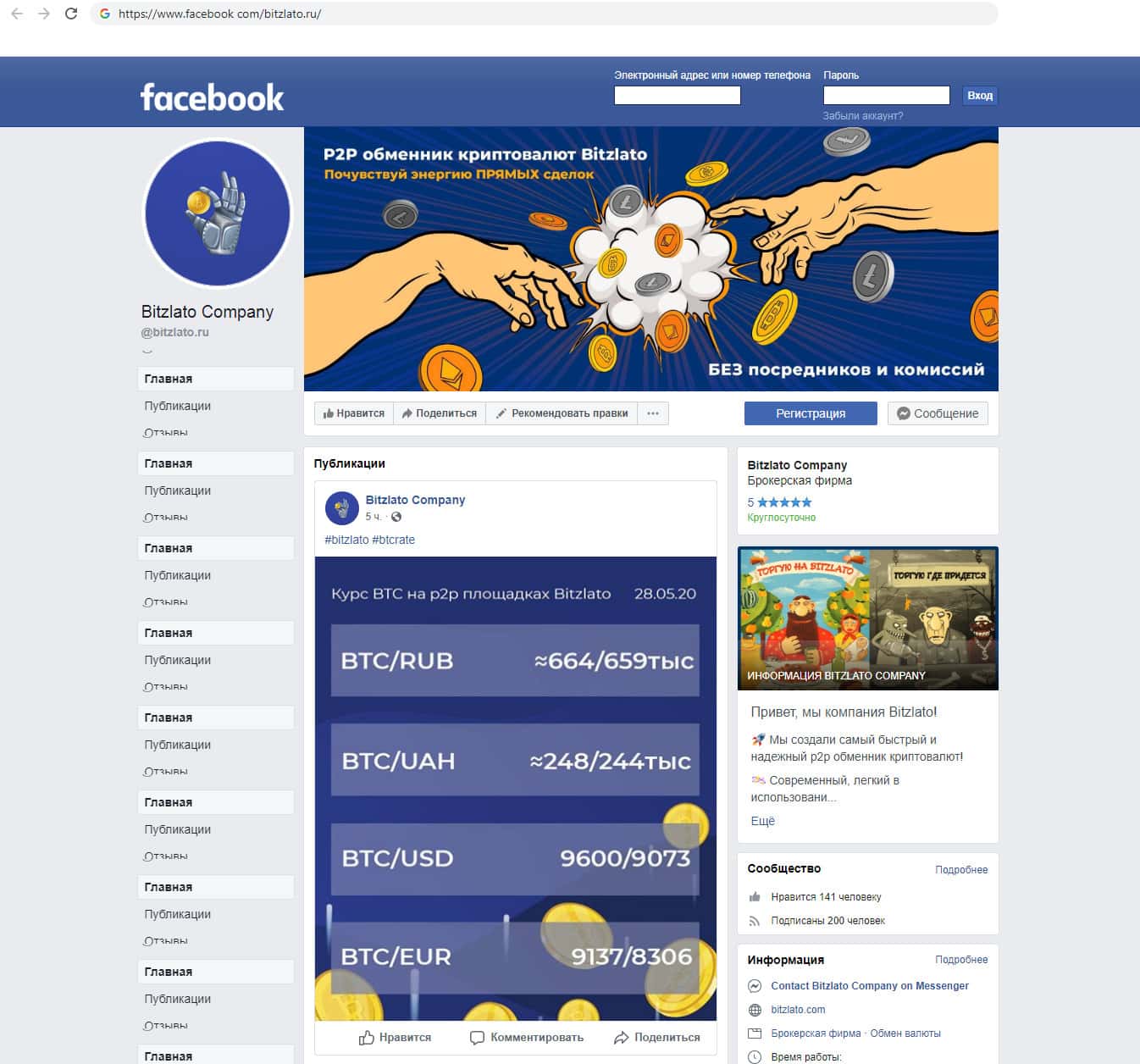 Для того, что бы заработать больше денег, мошенникам Битзлато нужно как можно больше клиентов, для того что бы найти большое количество неопытных пользователей, компания зарегистрировала страницы в различных социальных сетях. Там они рекламируют свою компанию и завлекают потенциальных клиентов.