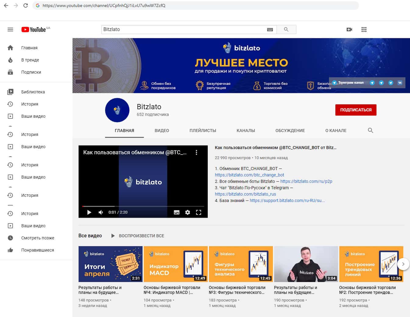 На всемирно известном видеохостинге YouTube компания разводил Bitzlato так же завела канал. На него жулики заливают видео о результатах работы компании, обучающие, в общем всячески пытаются привлечь внимание пользователей. Там канал набрал более 600 подписчиков, это говорит о том, что на уловки мошенников ведутся всё больше пользователей.