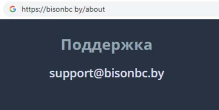 Жулики Бизон БС на своем официальном веб-ресурсе указывают только лишь адрес электронной почты, а именно: