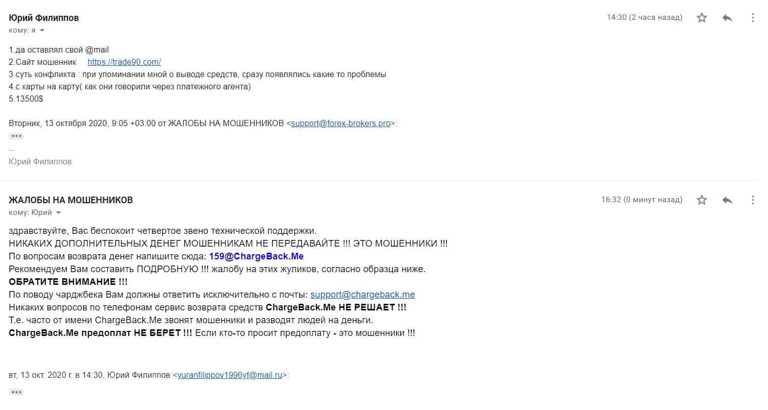 Мошенники Трейд 90 кинули клиента на 13 500 долларов